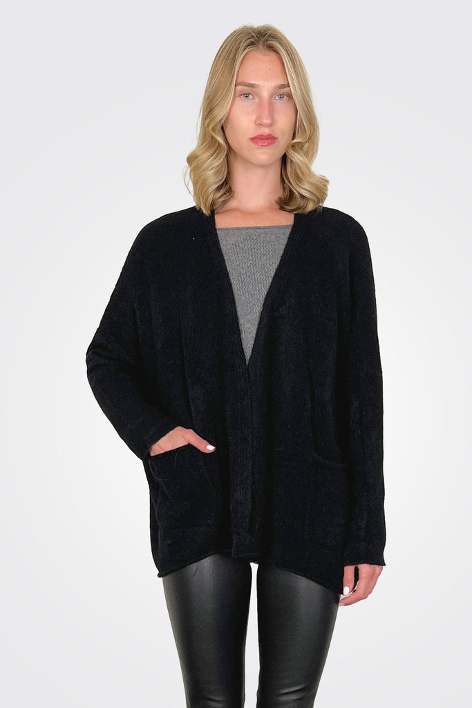 Open oversize knit cardigan with pockets by Rundholz Black Label.