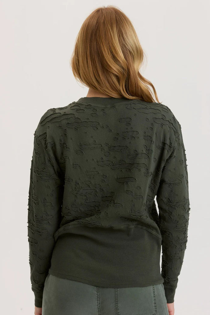new ripped jersey is on full display with this long sleeve crew neck pullover. With contrast rib detailing, Pugh brings you laid back classic vibes.