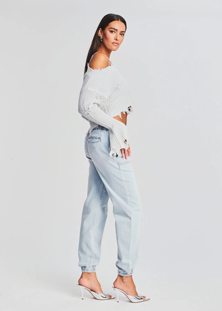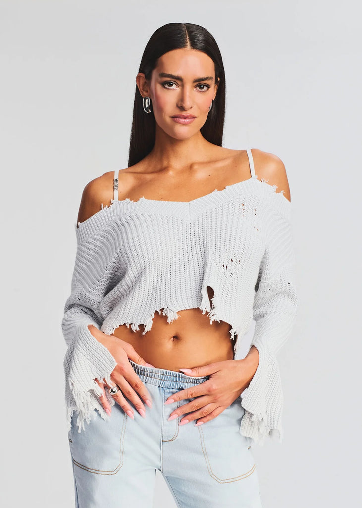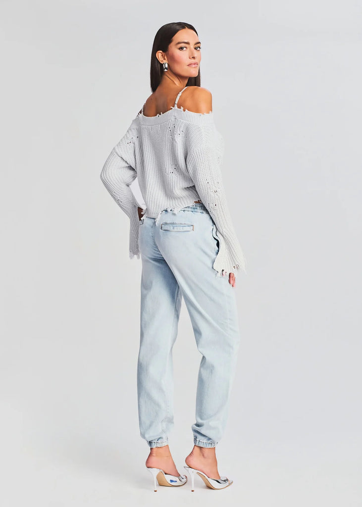 Blend comfort with style in SER.O.YA's Skye Sweater. This long-sleeve off-the-shoulder top features a SER.O.YA emblemed shoulder strap and rips throughout. Shown here in Fort Greene W/ Dye.
