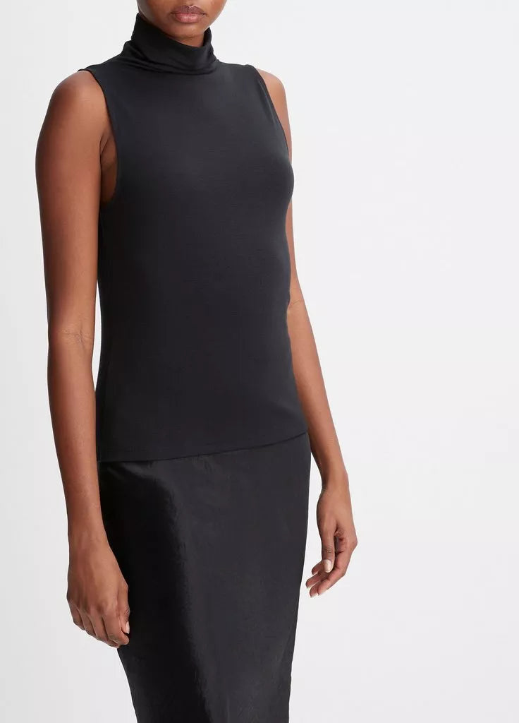 Done in an exceptionally soft stretch-modal, our sleeveless turtleneck is a seasonless staple with a close-to-the-skin silhouette, making it the perfect top for tucking in to trousers and skirts.