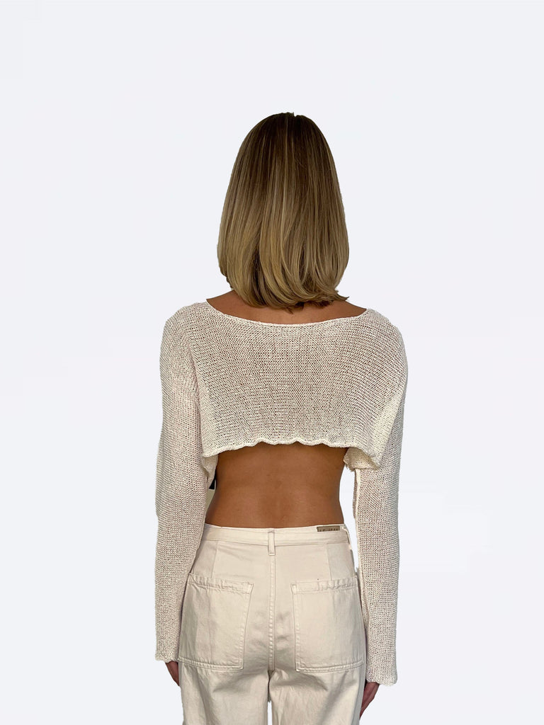 The ultimate go-to sweater, expertly crafted to provide the perfect combination of warmth and style. Its classic design and soft fabric make it a must-have addition to your wardrobe. A chic cropped piece perfect for travel.