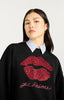 The Je Taime Justina Pullover boasts a two-layer design that combines a crisp collared shirt with a sleek black cropped sweater. The bold red embellishments and the classic French words "je t'aime" at the center adds that chic finishing touch. Perfect for a polished yet relaxed look, this pullover offers both comfort and fashion in just one piece.