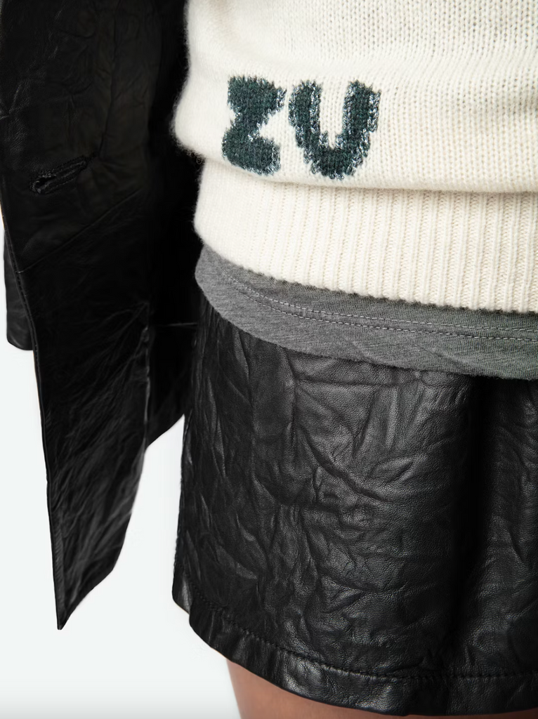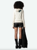 - Intarsia heart motif, "Hello Stop Breaking Hearts" message and ZV signature embellished with metallic embroidery