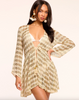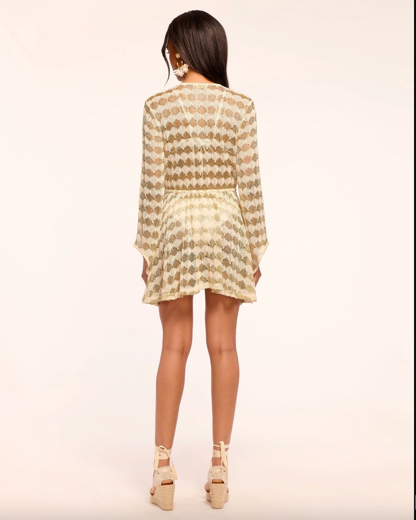 Elegant yet relaxed, the Arrika showcases sheer metallic crochet, a tie-front silhouette, and long sleeves. Perfect for layering over swimwear or wearing with shorts and a tank for casual daytime outings.