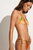 Designed for the sun seeker, the Hollis Bikini Top offers a modern take on the classic triangle top. Cut from soft and shiny nylon custom printed in our retro-inspired Costa Smeralda Print, the Hollis features adjustable straps designed to be tied at the front and accents of gold tone hardware.