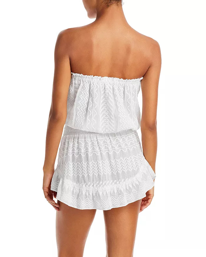 Ramy Brook's Sallie cover-up dress is crafted of cotton, showcasing a strapless neck, smocked waistband, and tonal embroidery.