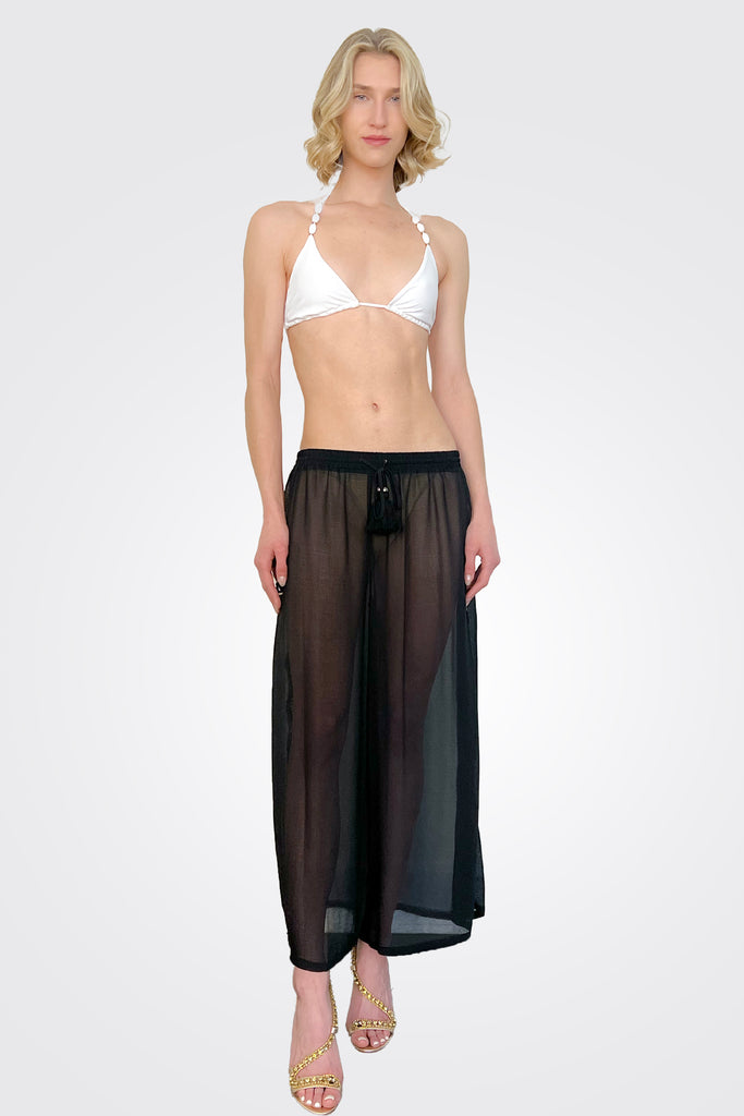 Shelby Tassel Coverup Pants - Black