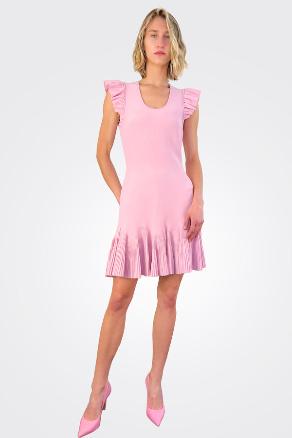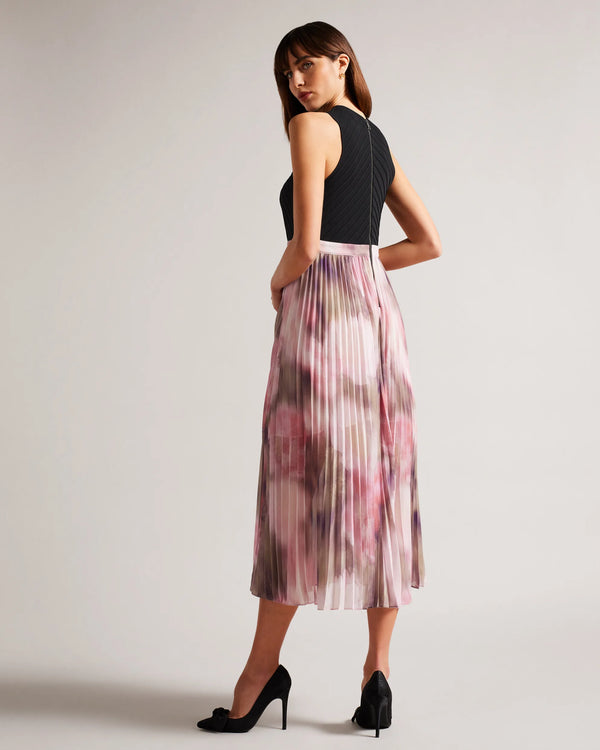 Loulous Pleated Skirt Midi Dress - Coral