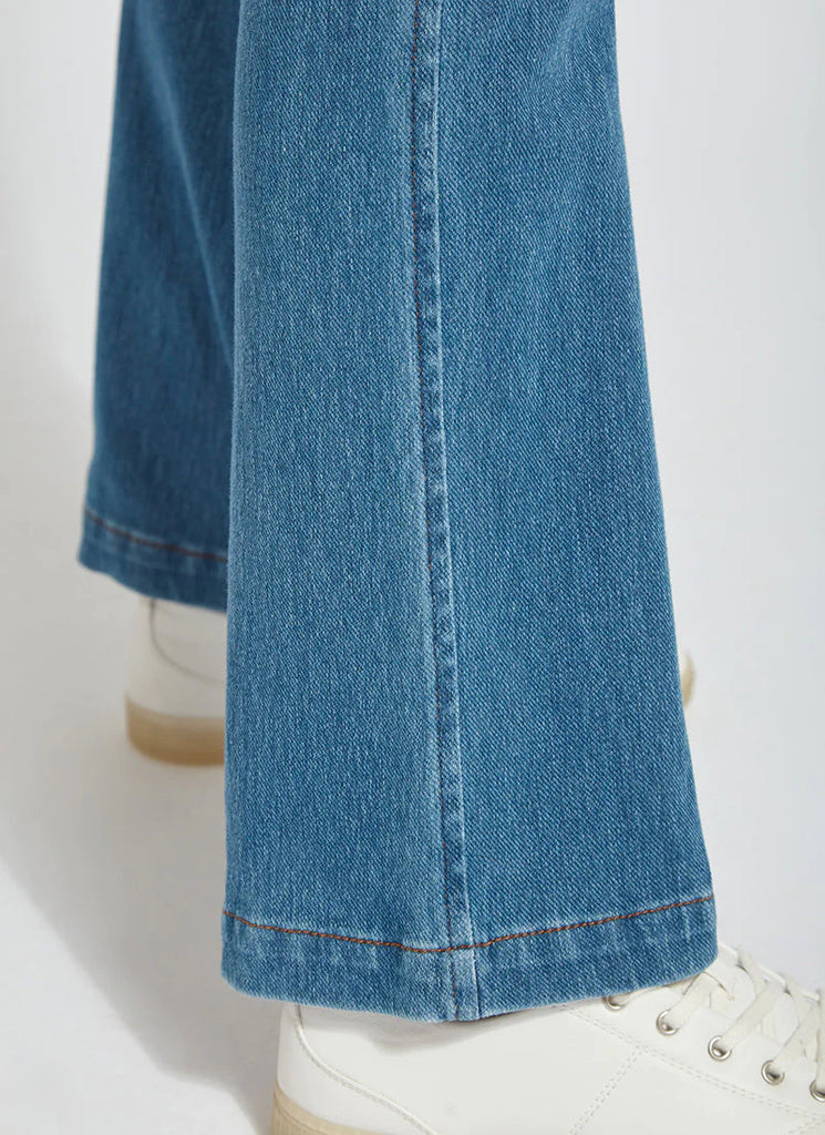 Crafted from stretchy Knit Denim, the work or leisure Baby Bootcut offers pull-on styling, a concealed patented waistband and contrast-color top stitching. These bootcut jeans are rich in detail with studded back pockets and anatomical seaming that lifts and contours. The Baby Bootcut jean skims the hips and thighs before falling into an open bootcut hem. Pull them on for work or play with an ivory mock-neck top, black booties and faux leather fringed jacket.