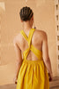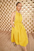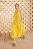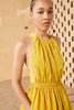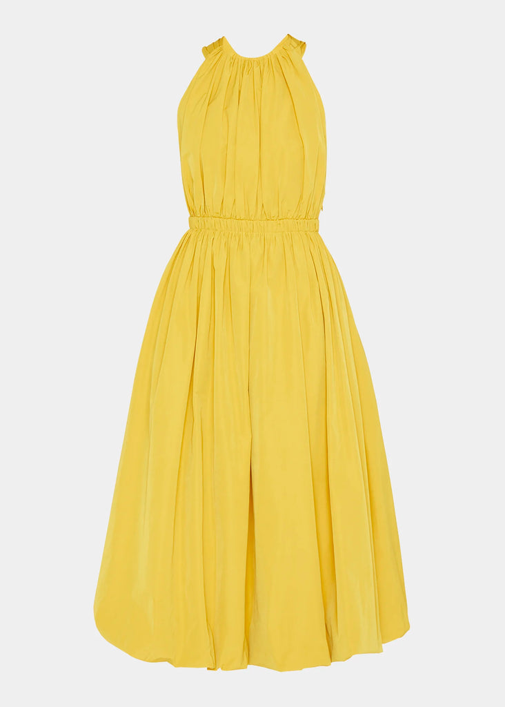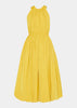 A perfect combination of structure and fluidity, the Leyna Dress is a stunning silhouette with dimensional pleats and gathering throughout. A halter neckline brings sophistication, while an open back with a twisted strap detail adds a contrasting sultry element. The midi length bubble hem is fun and funky, making it the perfect piece to wear for dinner al fresco or on a girls trip to somewhere warm! Pair with heeled sandals and statement earrings for an effortlessly beautiful look.