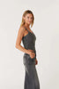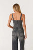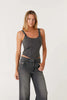 Carbon corset top is a fully fashioned tank top with a round neckline, inspired by the casual, yet bold bustier seaming details and a flattering round hem. It has matte metallic rhinestone appliques to bring in some shine and sparkle.