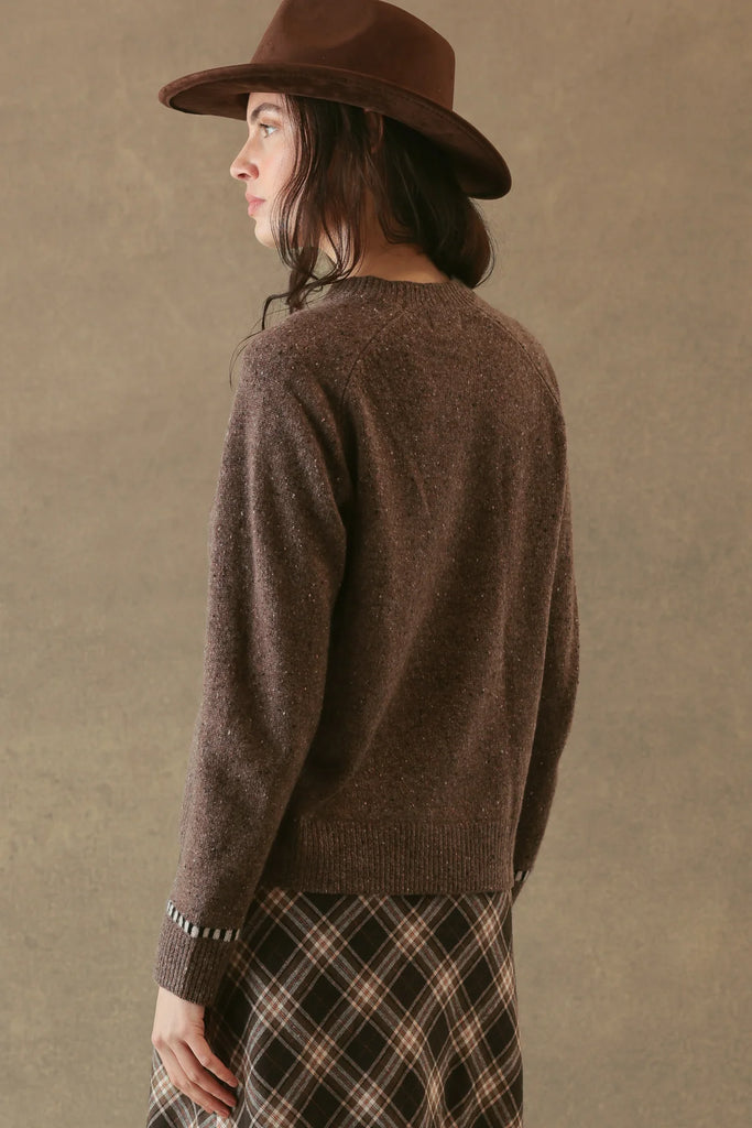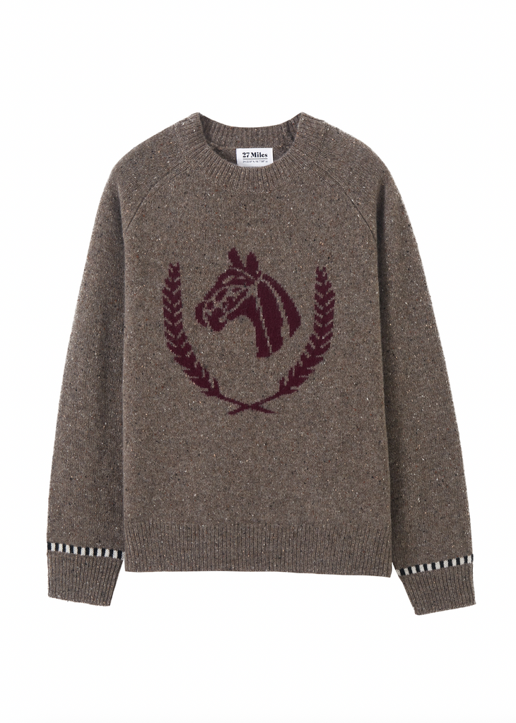 The Colt sweater brings a fresh take on western-inspired style. Crafted from soft Donegal speckled cashmere, it features a bold horse intarsia at center front and contrast black-and-white cuffs with a subtle western touch. Designed in rich autumnal hues, this novelty crewneck adds warmth and character to your fall wardrobe.