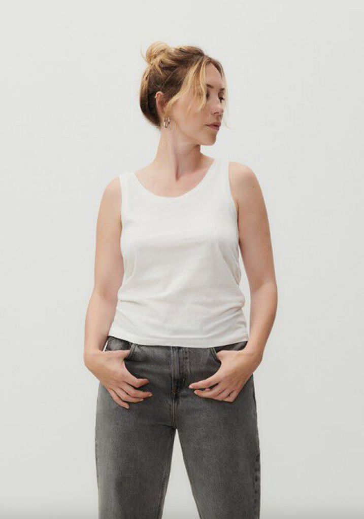 Soft to the touch, the Gamipy thick cotton tank top can be worn next to the skin. Timeless, it can be worn on its own, under a knit or tucked into jeans.