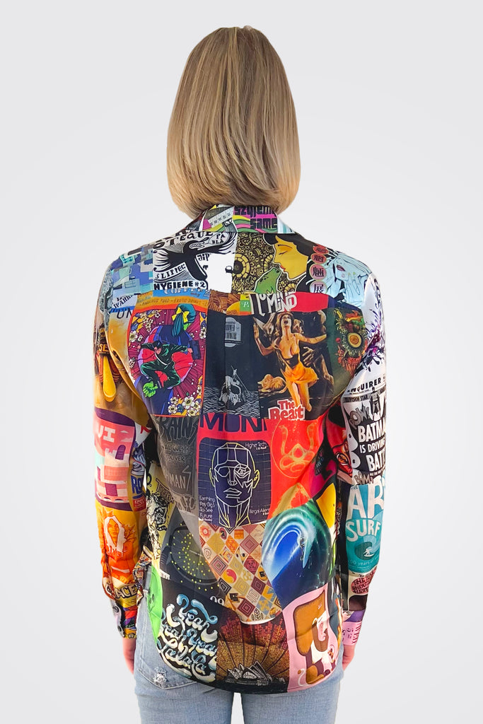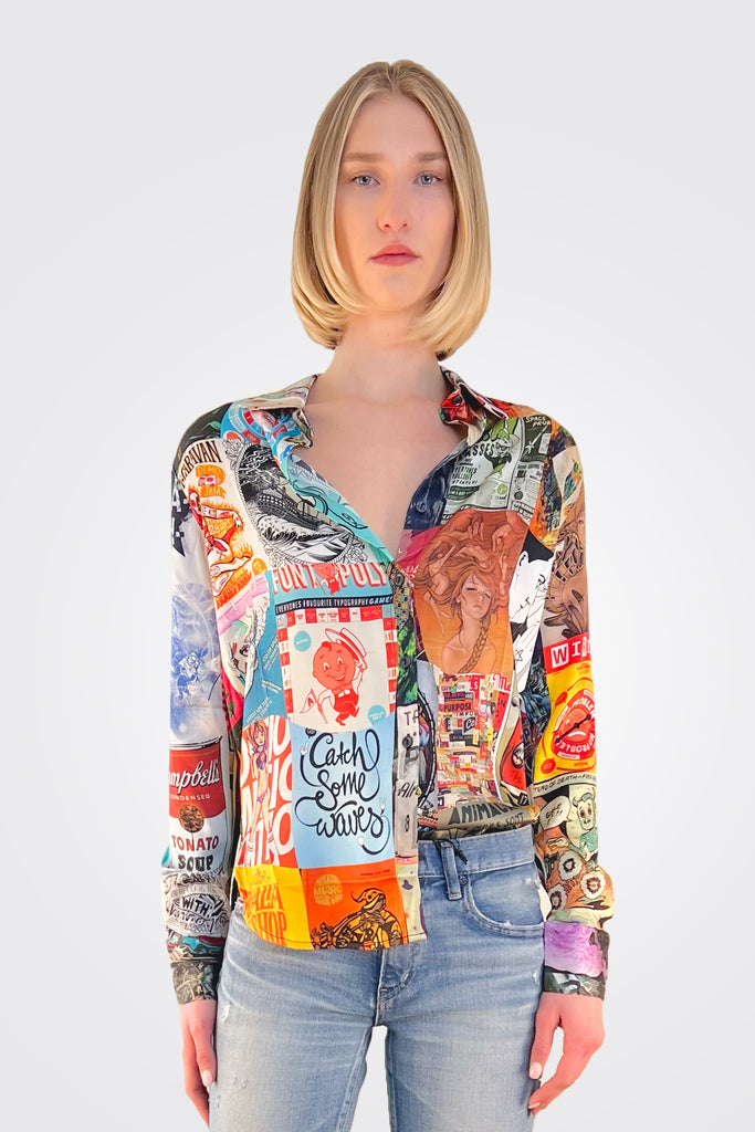Printed silk Unbreakable Evolution button down blosue