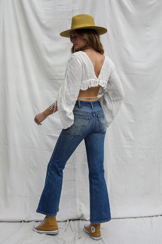 Channel your inner boho rocker in our Starlit Crop Top. Crafted from our signature cotton gauze, this lightweight crop features a v-neckline, ruffle hem, and dramatic long sleeves with adjustable ruching.