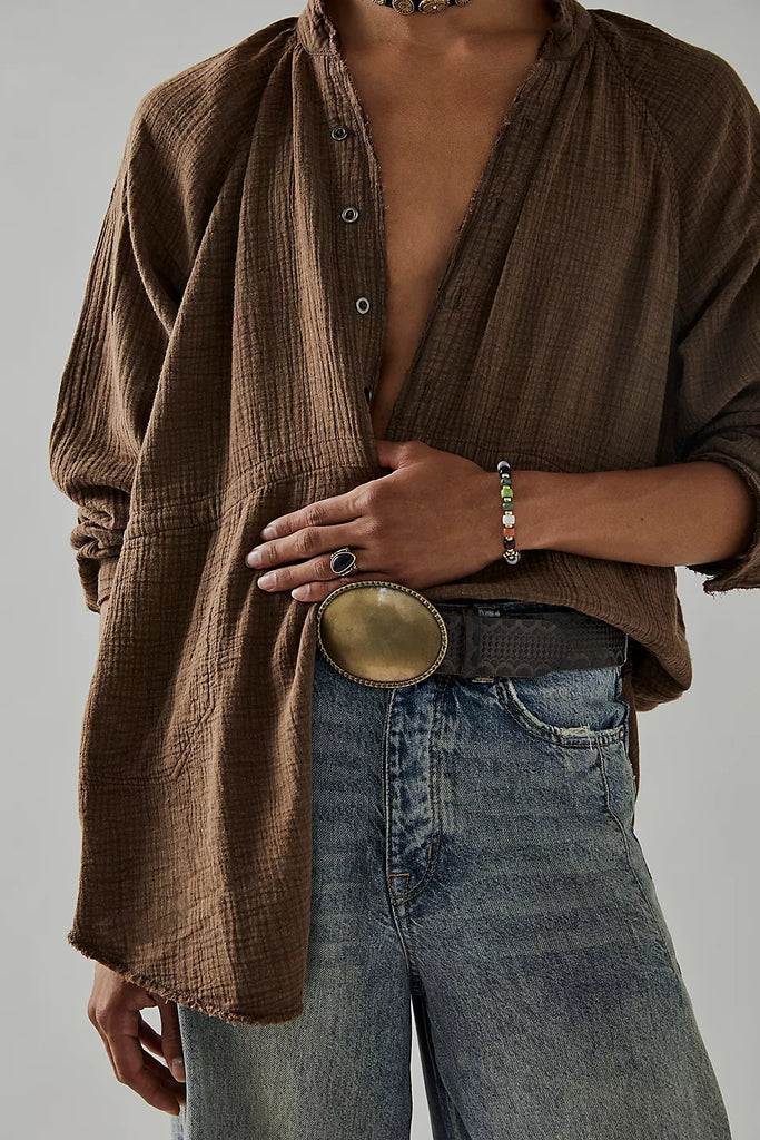 Your new go-to top, this essential buttondown is featured in a forever classic style and slouchy, oversized fit to add the perfect shape to any look.