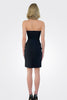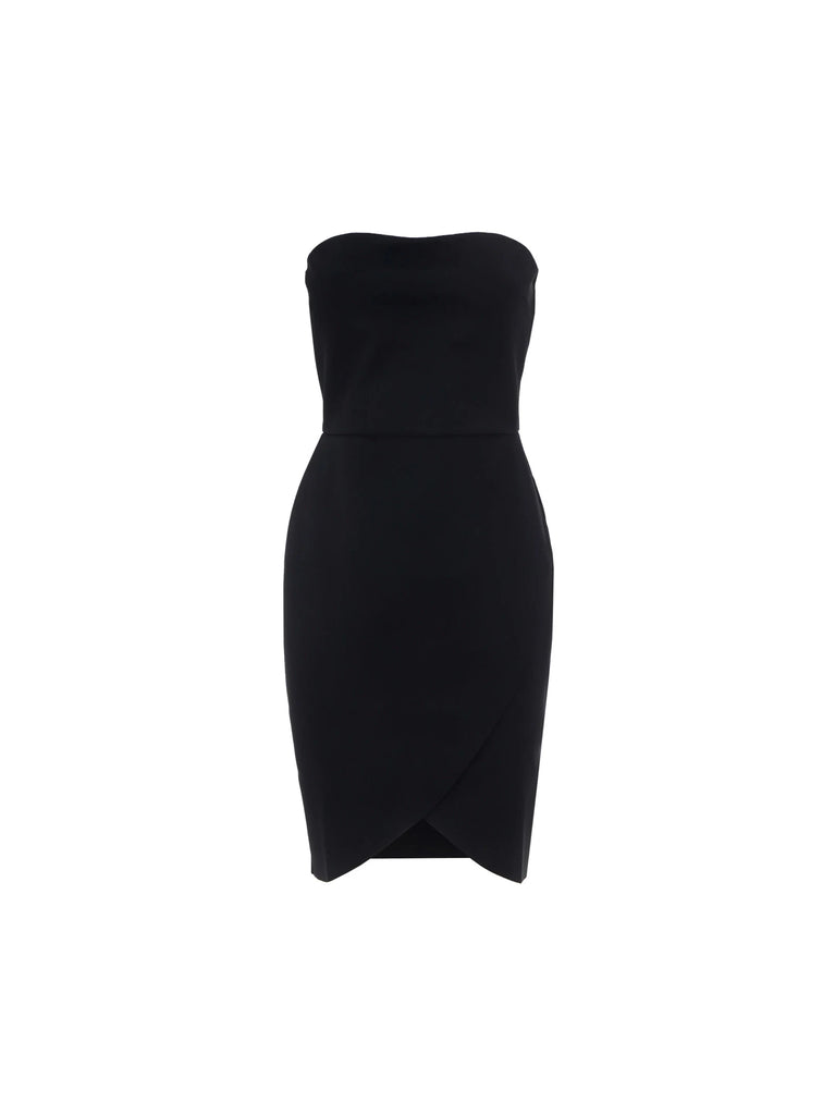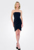 Antonieta dress by chiara boni, strapless soft sweetheart neckline, short dress, front slit, fitted stretch skirt.