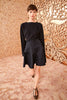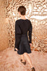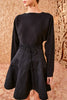 Aremi Dress is a sculptural silhouette with a smooth, knit-like bodice juxtaposed with a twill suiting skirt. This classic black mini dress has beautiful volume in the long sleeves and falls to a playfully flared A-line skirt with tonal seam detailing. It has a removable belt that cinches the silhouette.