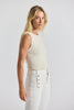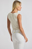 The Ariana Muscle Ribbed Sweater Tank is a chic underpinning piece that can also be worn alone. It features a crew neck and fashioning details through the rib and around the armholes.