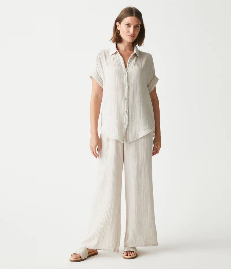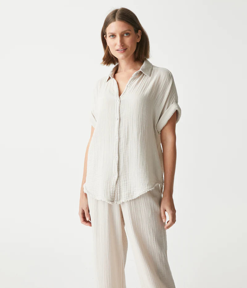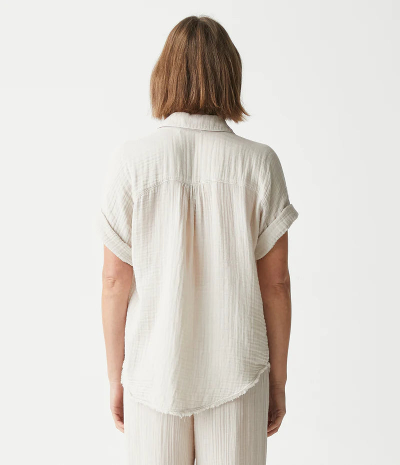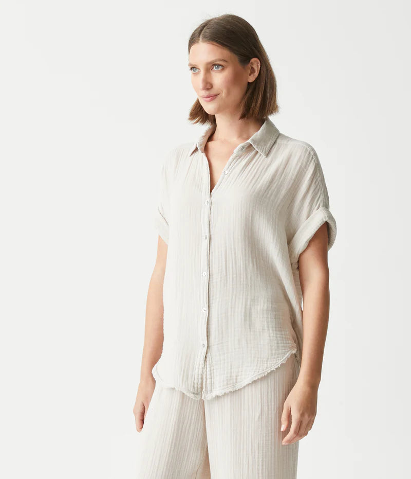 Effortless and light, Bailey has rolled short sleeves, a button up silhouette and a raw-edge hem with an easy fit. Made from our cool and airy double gauze that you'll live in all summer.