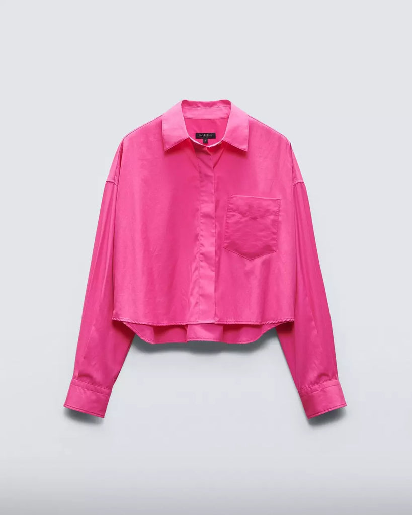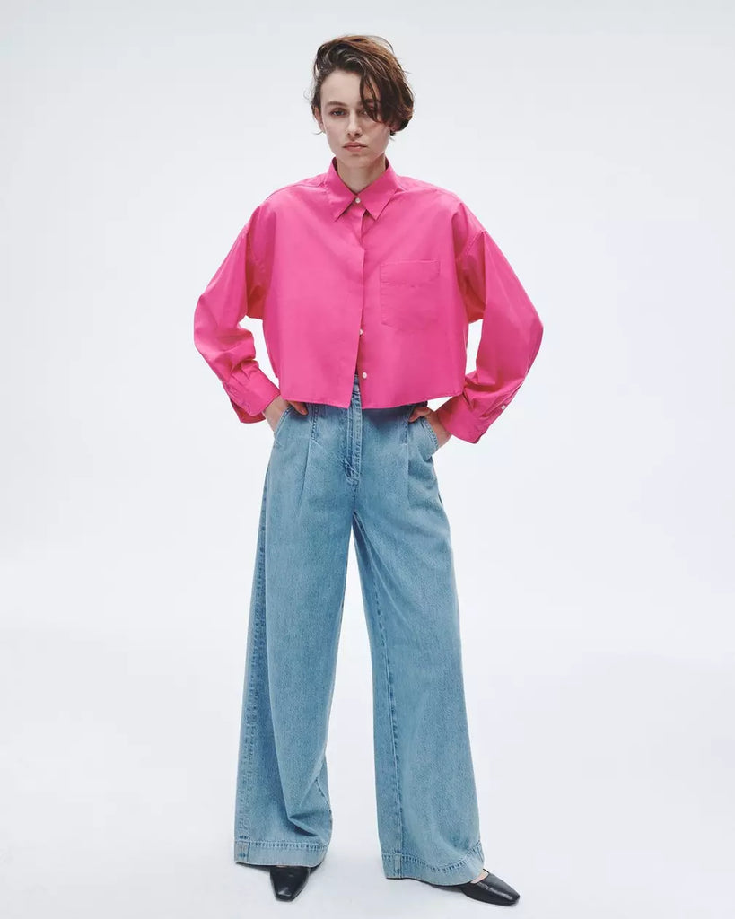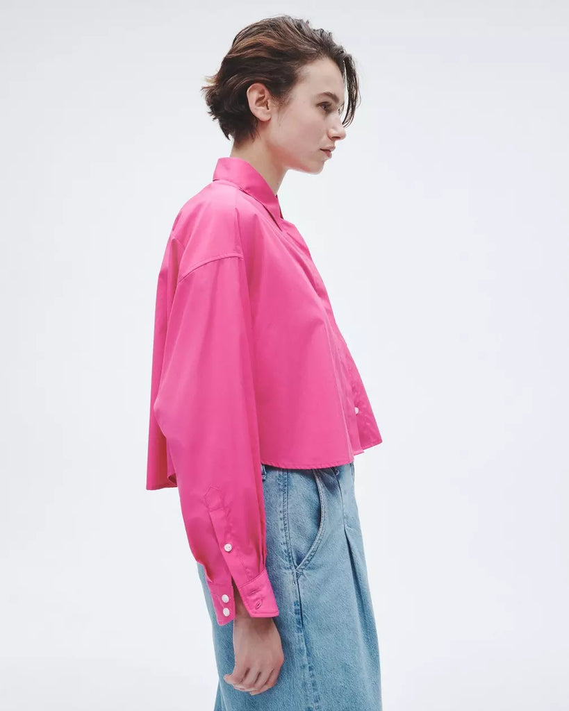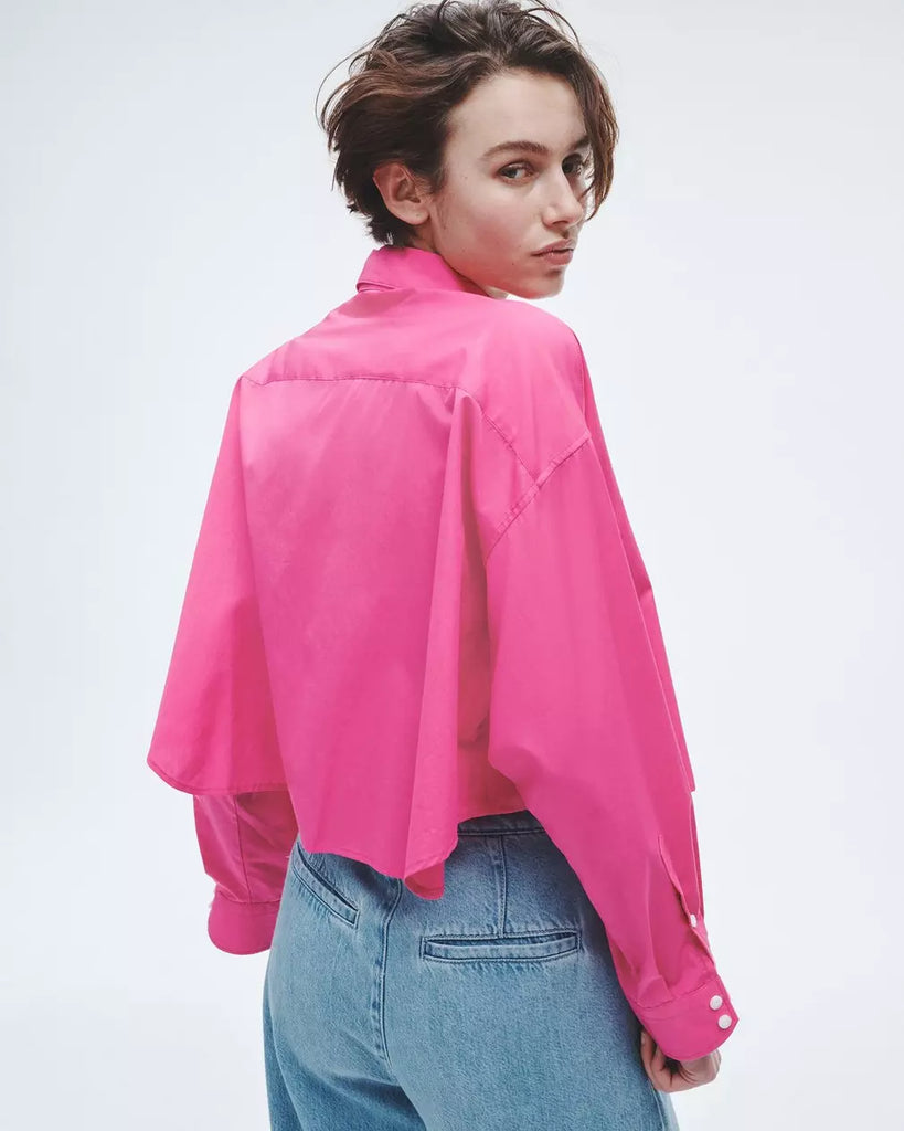 Beatrice Cotton Poplin Crop Shirt - Bright Pink