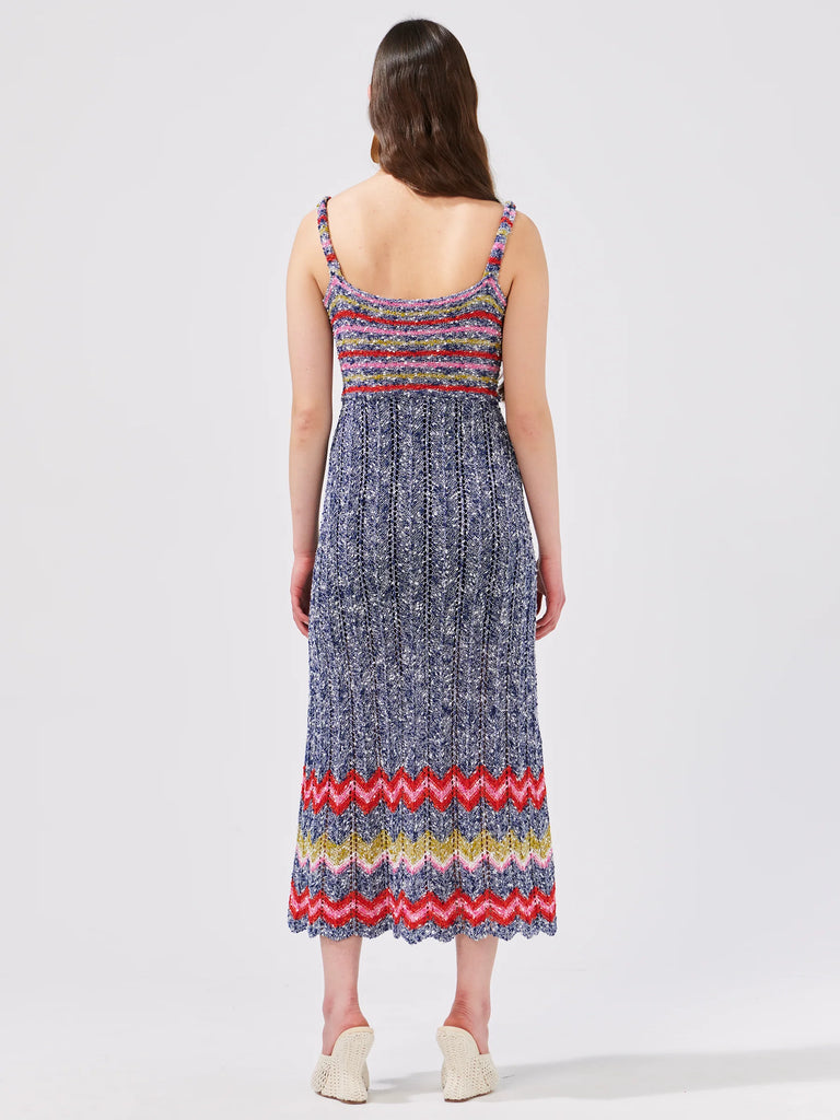 She who dares wins. Show off your sun-kissed skin in Zig Zag Sun Dress, crafted from a soft cotton blend using a cleaner, OEKO-TEX certified process. The skirt cascades from an empire waist, elasticated for comfort and ease. This piece can take you from the beach to the bar and beyond, marrying easy glamour with a playful sense of adventure.