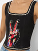 Based off our founder Stacey's massive collection of vintage band tees, The Breslin is actually a sexy little corset top. It includes a flattering square neckline, pyramid studs, smocking in the back and a sleeveless construction. Perfect for adding an edge in an unexpected way.