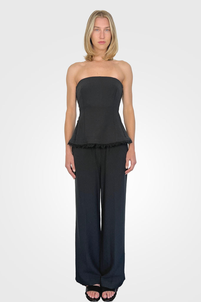Crafted from frayed crossweave draping fabric, these straight-leg pants offer a sophisticated and fluid silhouette.