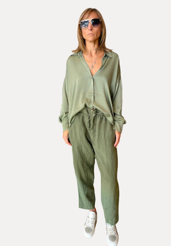 Comfort Fit Linen Trousers - Green