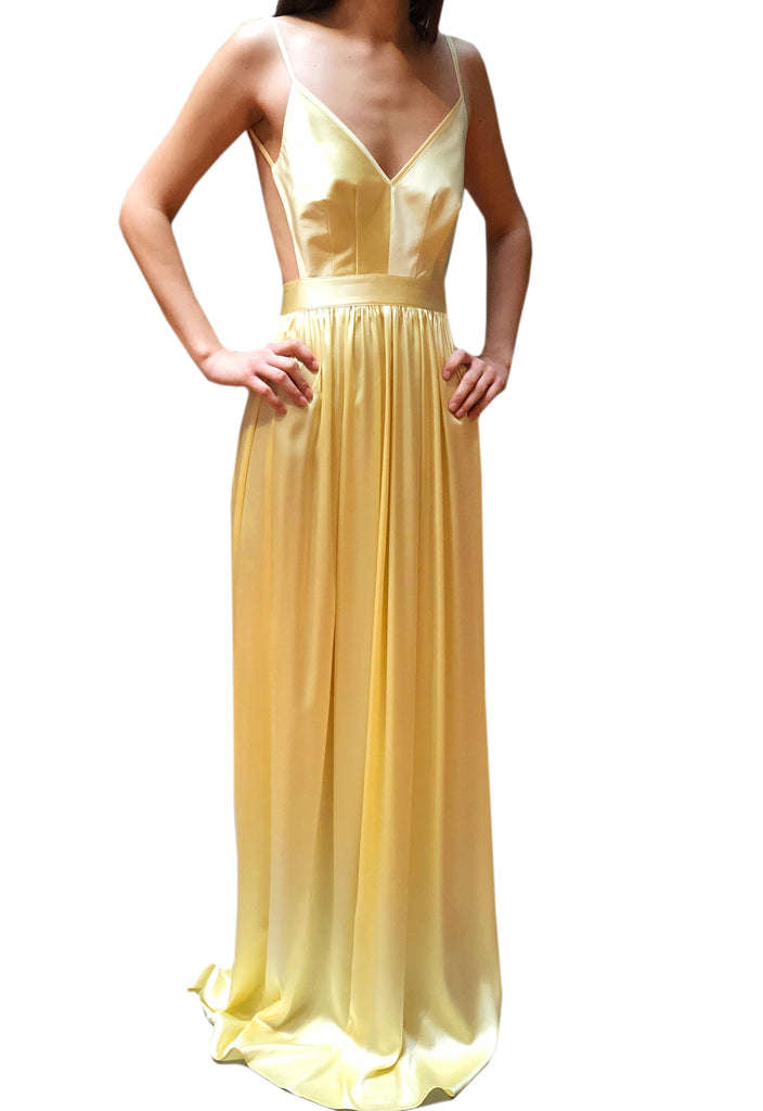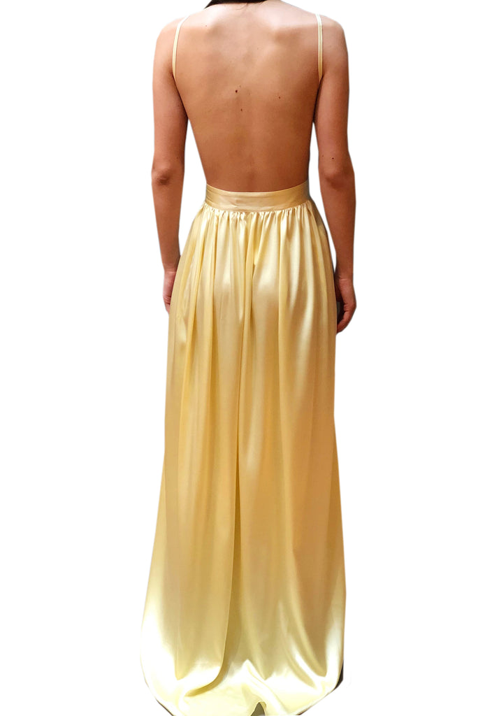 This beautiful silk charmuese dress has a stunning neckline with an open back.