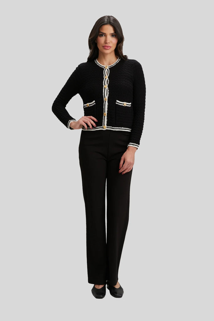 The Crotchet Detail Cardigan features a timeless round neck design and long sleeves, with a classic silver or gold button-front closure. A delicate touch is added to this cardigan by the intricate crochet detailing. Available in Black, Camel, and Grey.