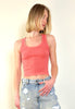Raw Edge Binded Scoop Neck Tank. The cut edges on the wide binding creates a raw unique look and turns a standard tank into a fashion essential. All seams are sewn with reverse thread for a unique look and adding strength as well. Our DNA Luxe Rib fabric is specialty knitted with our proprietary DNA Spandex for a natural stretch with great recovery which you will not find elsewhere in the marketplace.