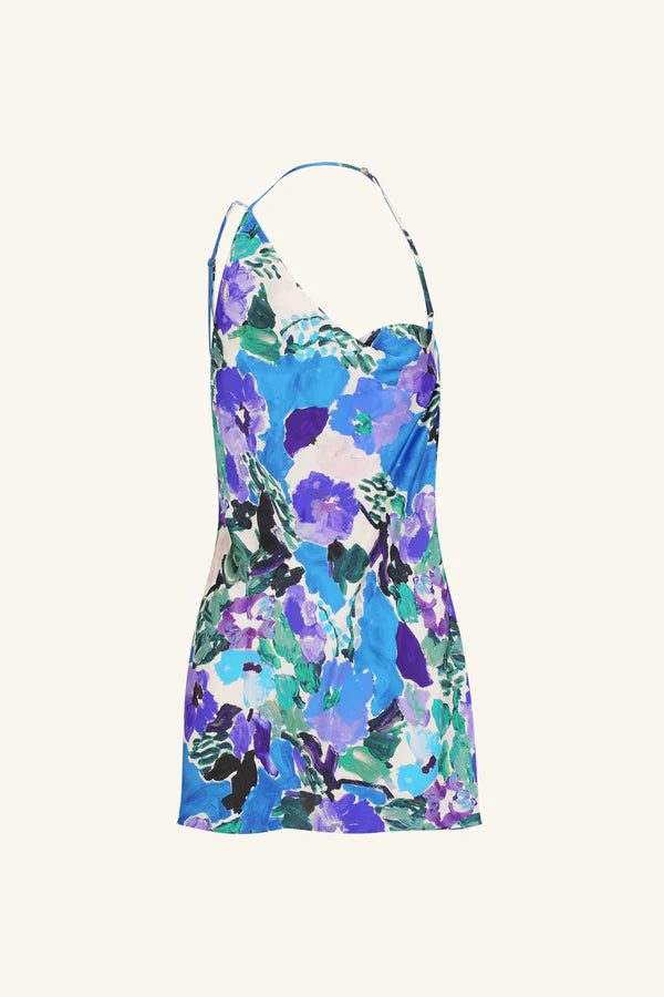 One shoulder cowl mini dress in the floral Curlewis print in a LENZING™ ECOVERO™ with a luxurious matte finish.
