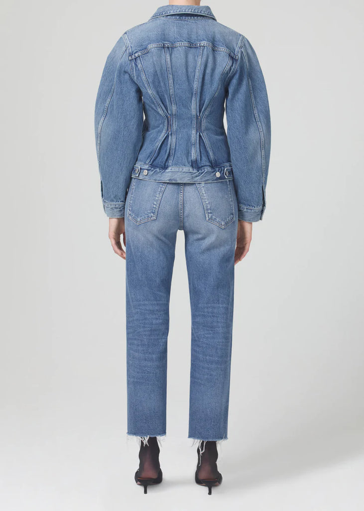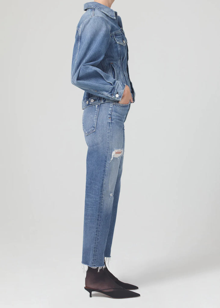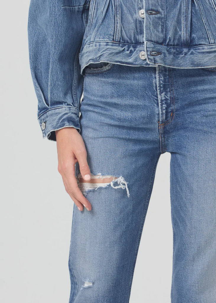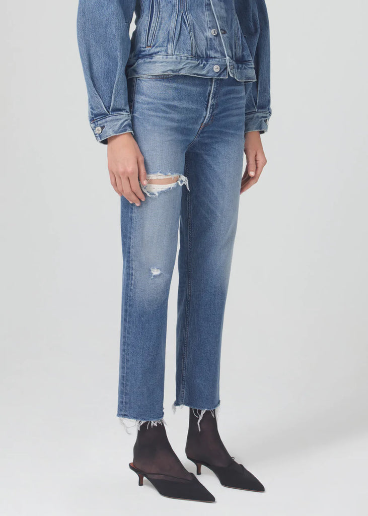 The leg-lengthening stovepipe silhouette is designed to sit high on the waist with ease through the thigh, and a full-length straight leg. A versatile jean, this laid-back yet flattering fit pairs well with chunky-knit sweaters, statement blouses, or oversize button-downs.