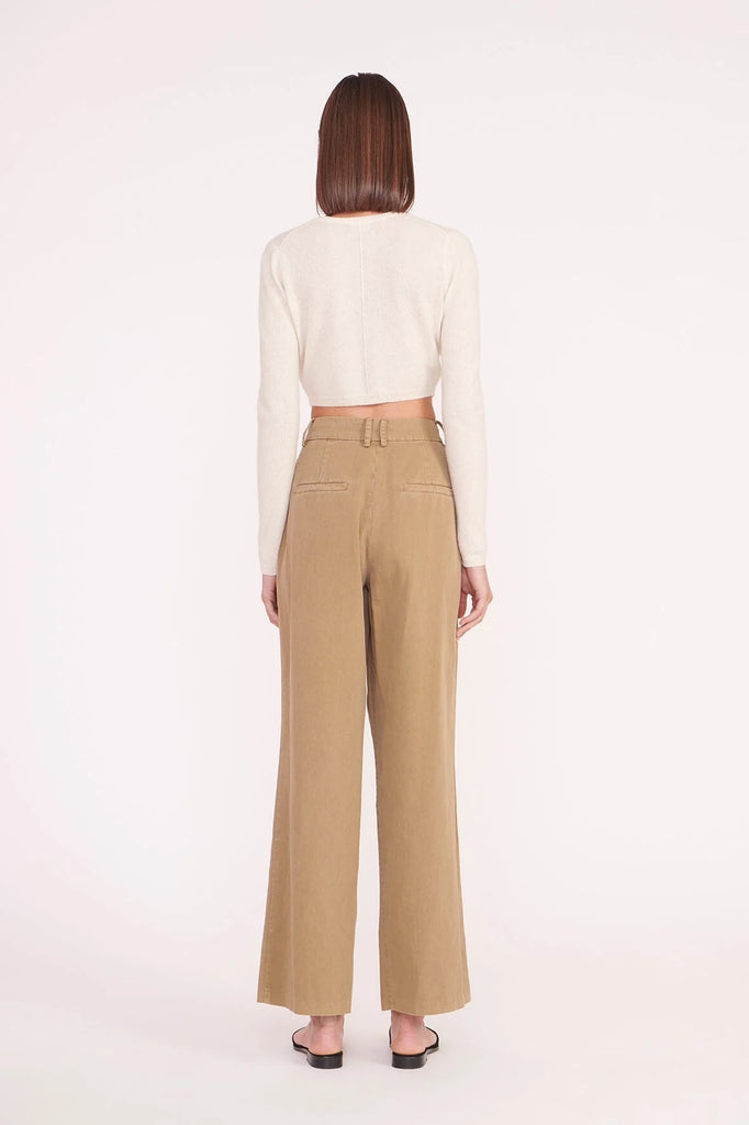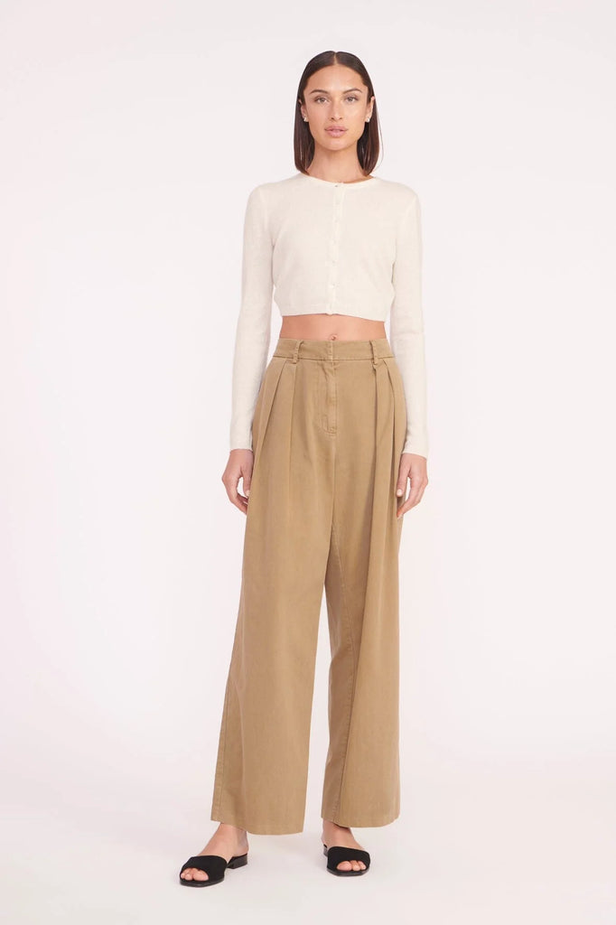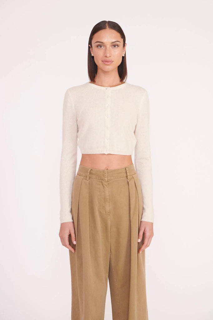 The Deanna Sweater is a cropped cashmere cardigan, a perfect layering piece for the season. The cardigan features a crewneck and button detail.