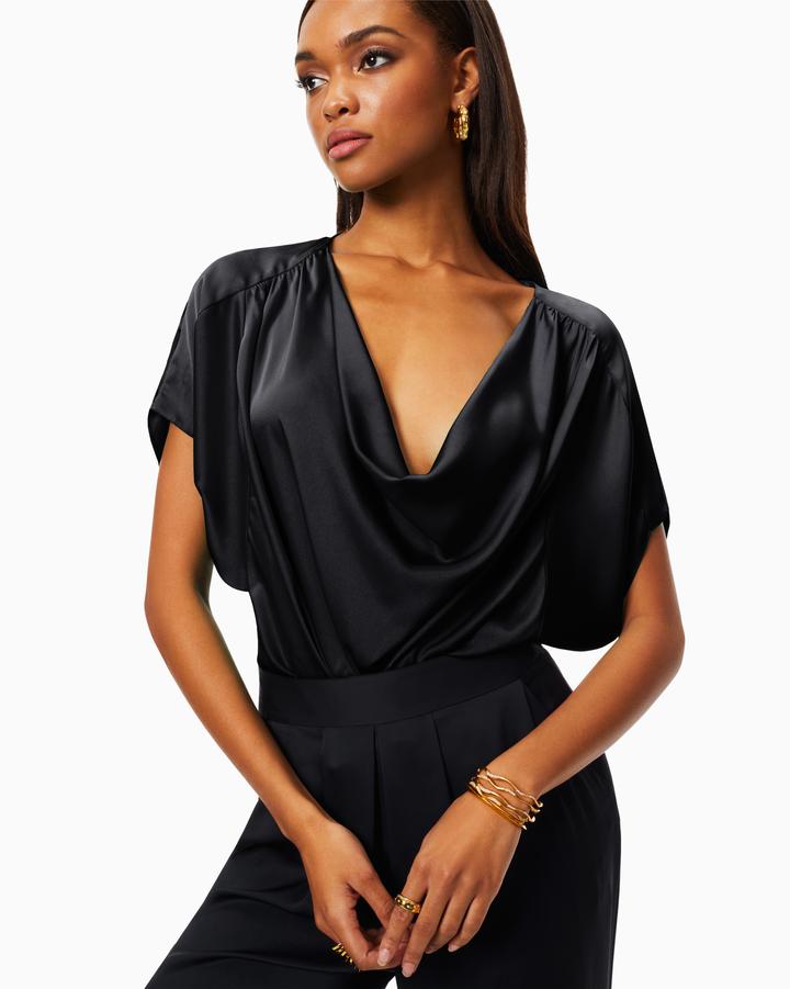 The Dorothy Top is a must-have for any spring wardrobe. The timeless cowl neck style features an extended shoulder for added shape. It's sexy. silky and soft to the touch.