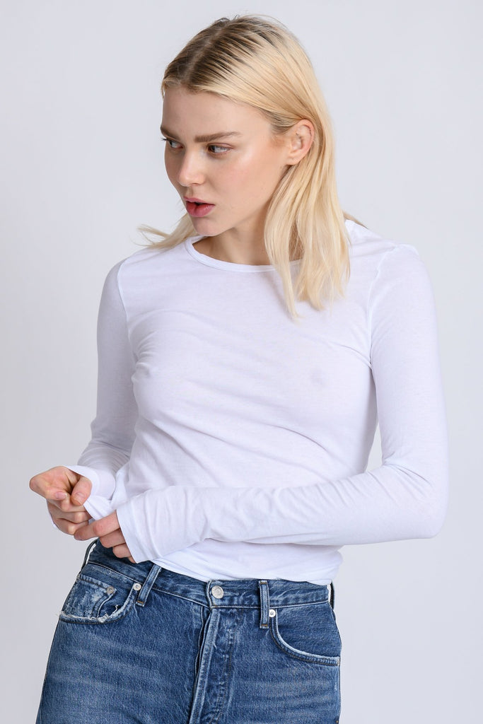 favorite crew with long sleeves. Easy fit, perfect for layering or wearing by itself.