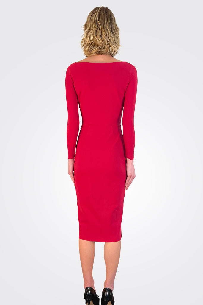Elma Long Sleeve Faux Wrap Cocktail Dress - Garnet