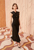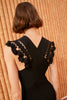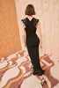 A body-skimming beauty, our Fiora Dress is spun from our compact rib knit with a crossover neckline that creates an elegant keyhole front. This black ankle-length dress is finished with fluttering, tulip-inspired trims at the sleeves and hemline that were crocheted by hand.