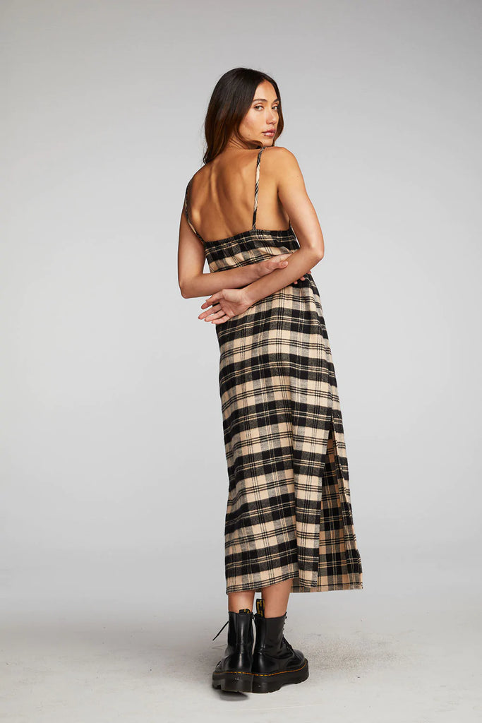 Flannel Midi Slip Dress is equal parts seasonal and stylish, with a Side-Slit and some cleavage.