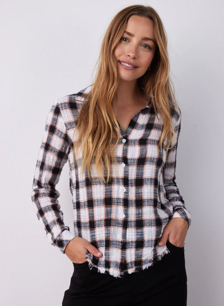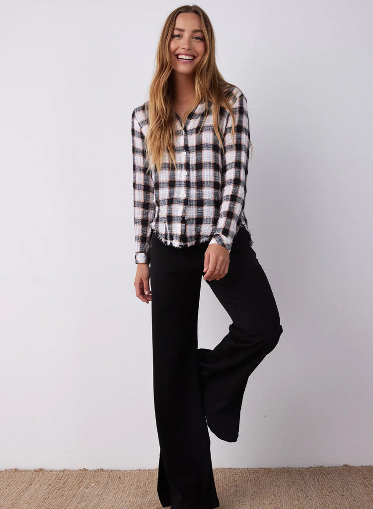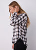 This black & white check plaid button down will surely make you stand out in style! We love the fun print and how versatile it still is, wear it casually with jeans and sneakers or dress it up with heels a blazer, and midi skirt for work. No doubt you will look chic and stylish either way!Made with 70% cotton & 30% rayon.
