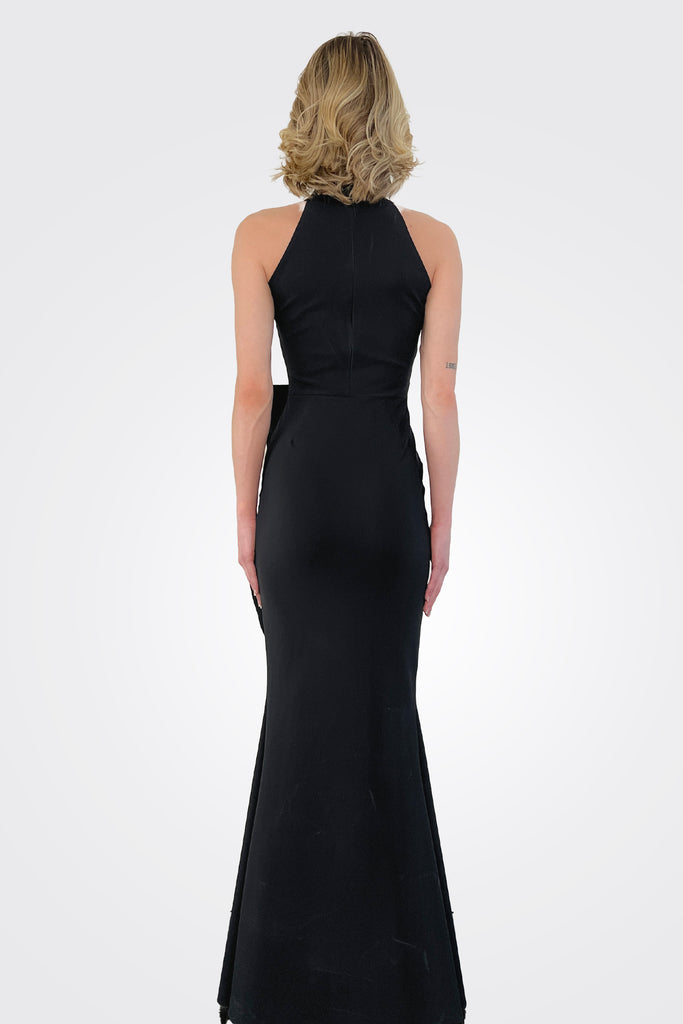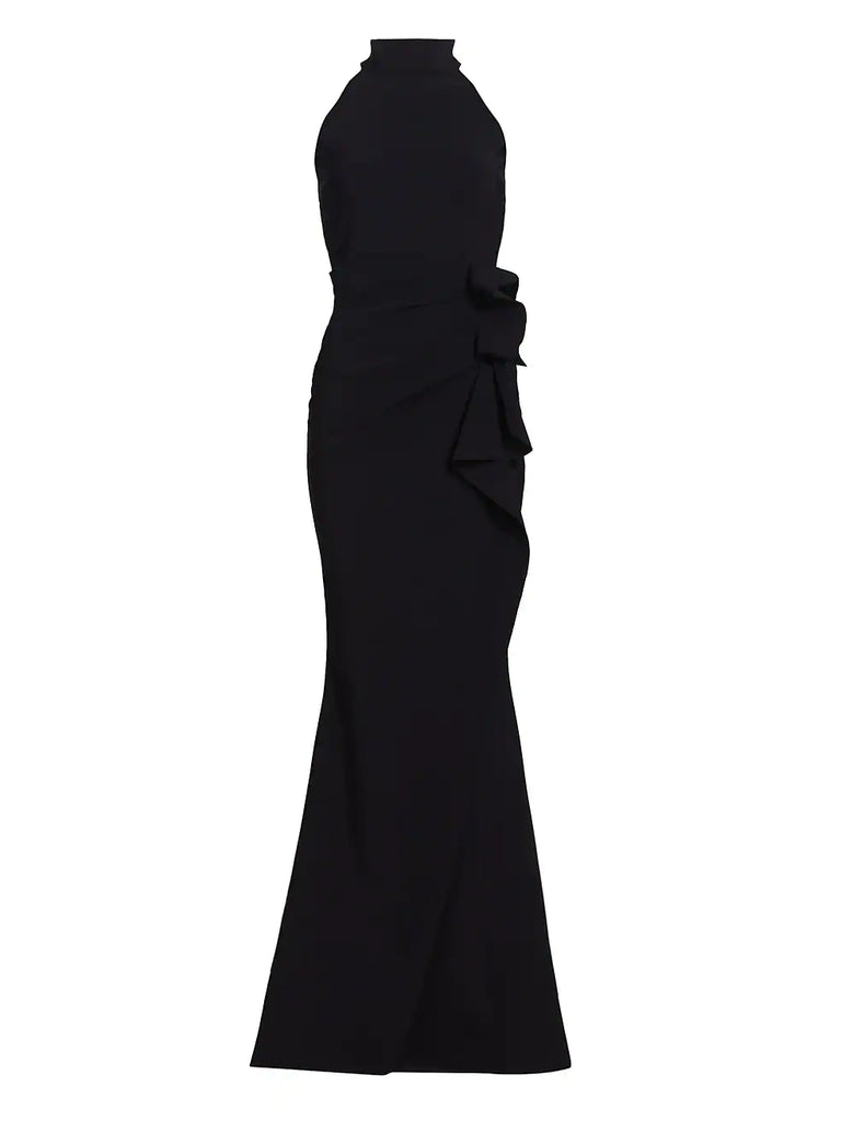 Chiara Boni La Petite Robe's Gudrum gown fits and flares from the mock halterneck to the flared hem. Crafted of stretchy fabric, this floor-length piece is detailed with dramatic ruffles on the side.