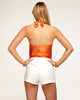 The top that started it all just got a seasonal upgrade in fresh new colors. The signature, silky Harriet Top is designed to be tied 6 different ways, making it the most efficient way to elevate your wardrobe with a single piece. Transition seamlessly from a simple sexy halter to a relaxed strapless silhouette depending on your plans.
