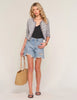 The Hilary Blazer is a slim fit, cropped blazer made from a fun, spring tweed. It has novelty buttons and a bracelet length sleeve. The perfect pairing to the classic jeans and a tee look.