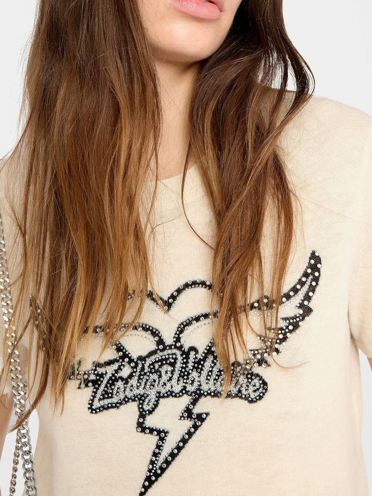 - Intarsia pattern and rhinestones