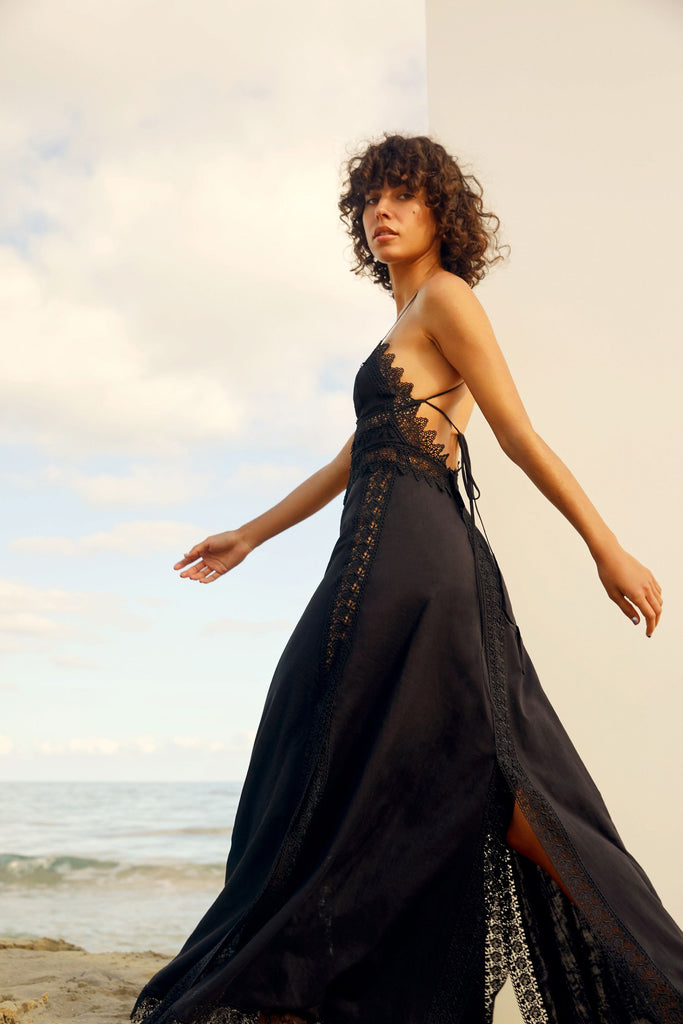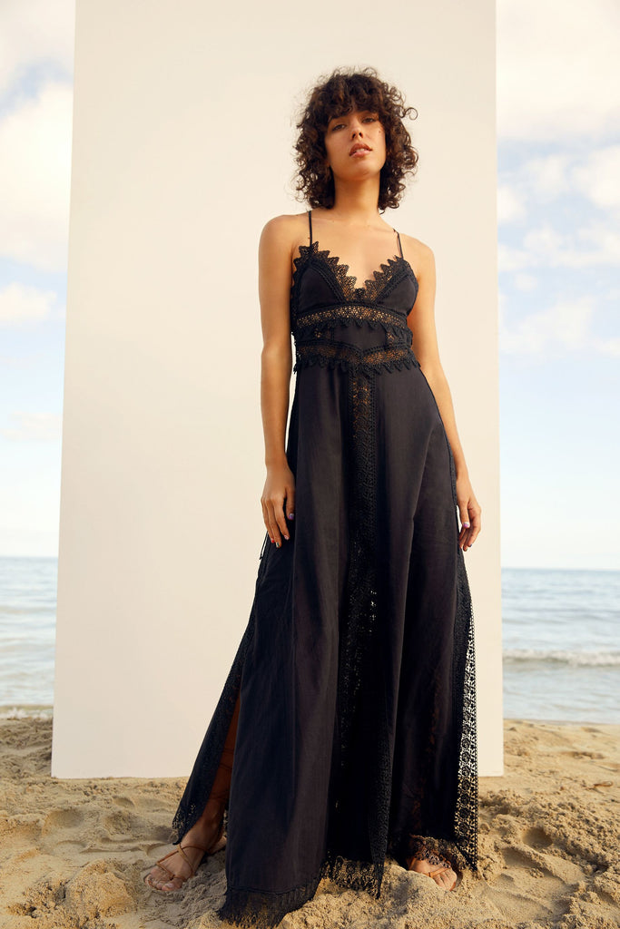 With triangular cups, scalloped guipure edging and slit in four; Imagen is feminine and pretty. An open, criss cross back adds something to Imagen, and the the maxi finish means Imagen is the perfect accompaniment to a Summer’s day.