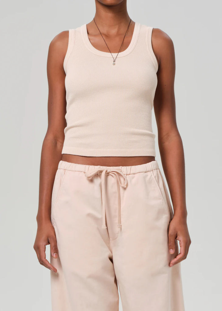 Staple silhouette. The Inez tank is made from a soft yet supportive stretchy waffle rib.