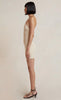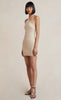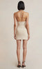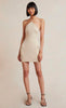 The Iris Mini Dress is cut from a bonded stretch crepe fabric in a fitted silhouette. This sleek style features a diamond halter neckline with thin rouleau straps and a mini length skirt.