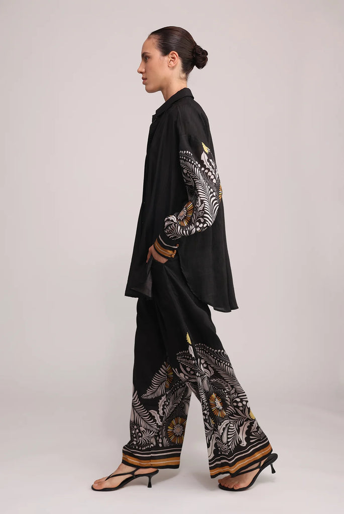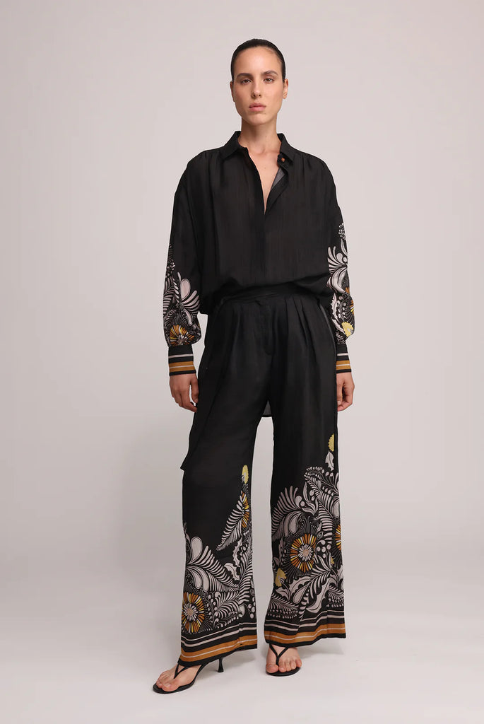 Casual sunflower print wide leg pants by Sabina Musayev.