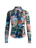 Sheer, fitted, and a little rebellious. This printed mesh button down hugs in all the right places thanks to stretch fabric that moves with you. The patriotic collage print brings that slightly daring energy, while the slim silhouette keeps it sleek. Wear it open over a camisole, under a blazer, or fully buttoned if you’re feeling bold. It’s confident, cool, and not for shrinking violets.